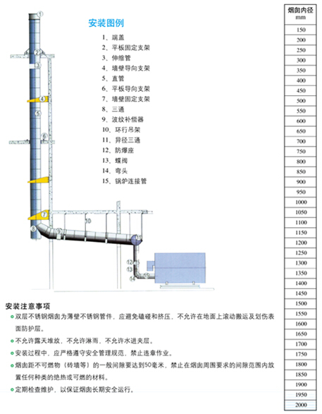 煙囪每個(gè)部件的內(nèi)、外筒及隔熱材料出廠前組裝為一體,現(xiàn)場(chǎng)安裝時(shí),只需擰緊螺釘即可,無(wú)須現(xiàn)場(chǎng)焊接、鉚接,使安裝方便、快捷。