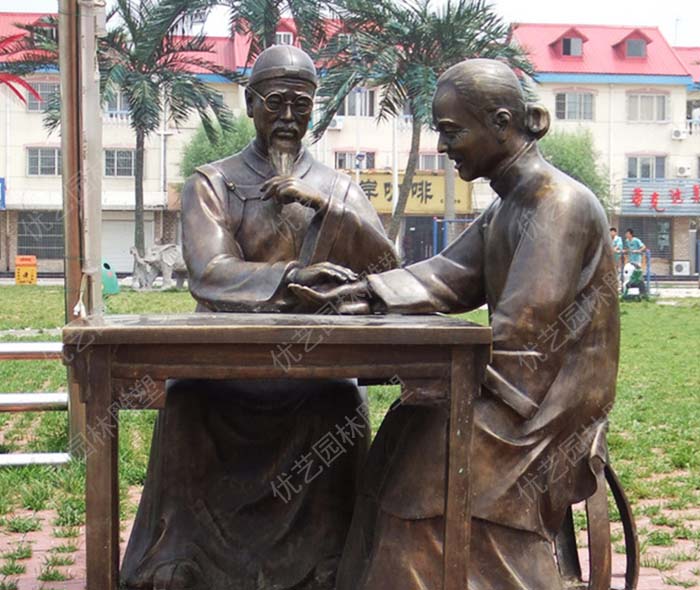 鑄銅景觀小品人物雕塑是人物雕塑的一個(gè)重要分支,銅景觀小品人物主要是指帶有觀賞性的小品人物雕塑,鑄銅景觀小品人物雕塑來源于生活,卻能給人比生活本身更完美的欣賞價(jià)值和趣味性,在美化環(huán)境的同時(shí),還能陶冶人們的情操,賦予環(huán)境鮮活的主題、豐富的精神內(nèi)涵和藝術(shù)美感。